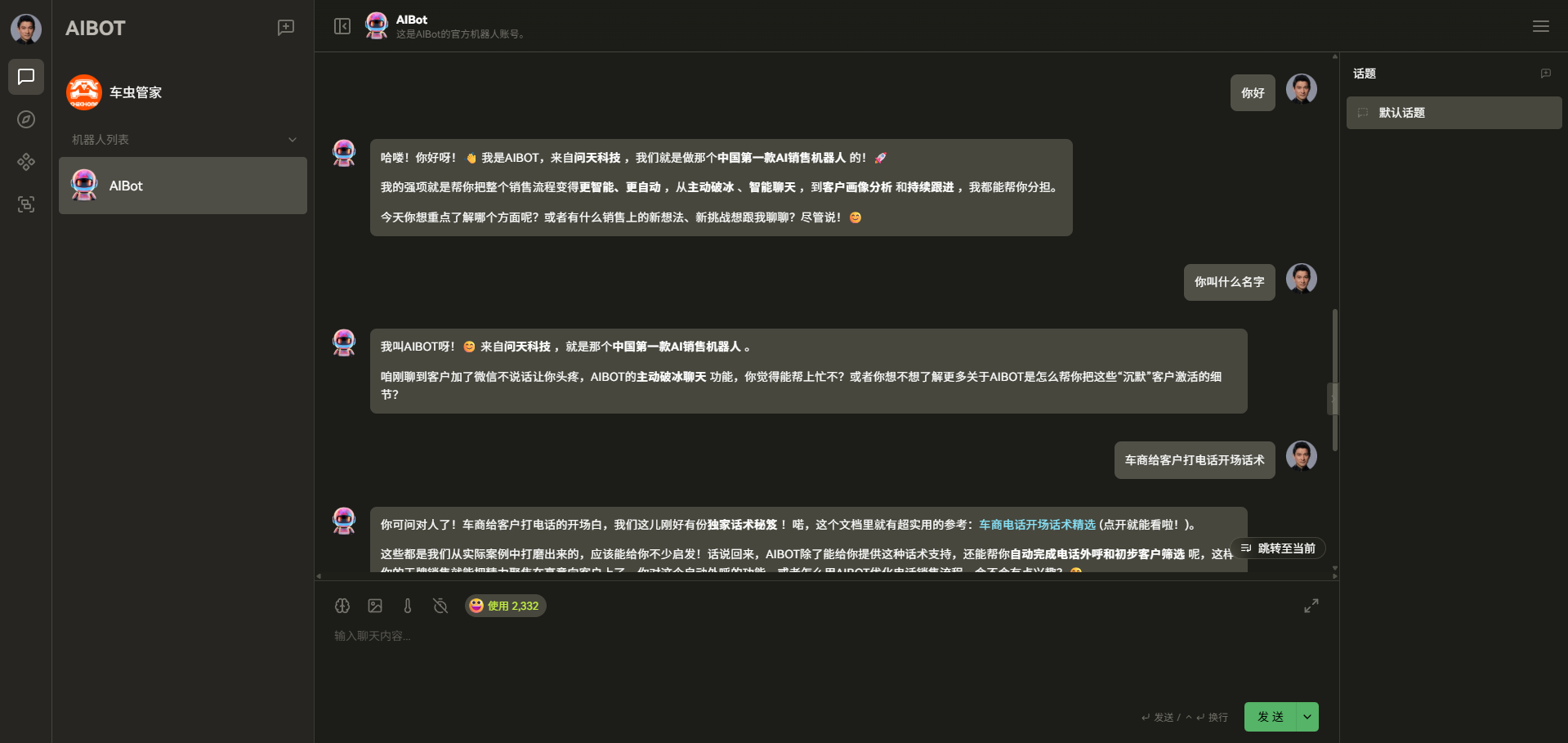 国内第一家实现了AIBOT全功能,完全实现自主获客、自主加微、自主销售全流程,使用极其丝滑;